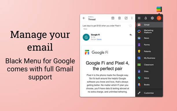 Получите доступ к этим и многим другим сервисам с помощью Black Menu for Google: