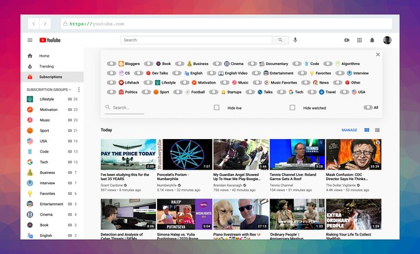 The best manager to group Youtube subscriptions. Make YouTube folders and sort Youtube channels